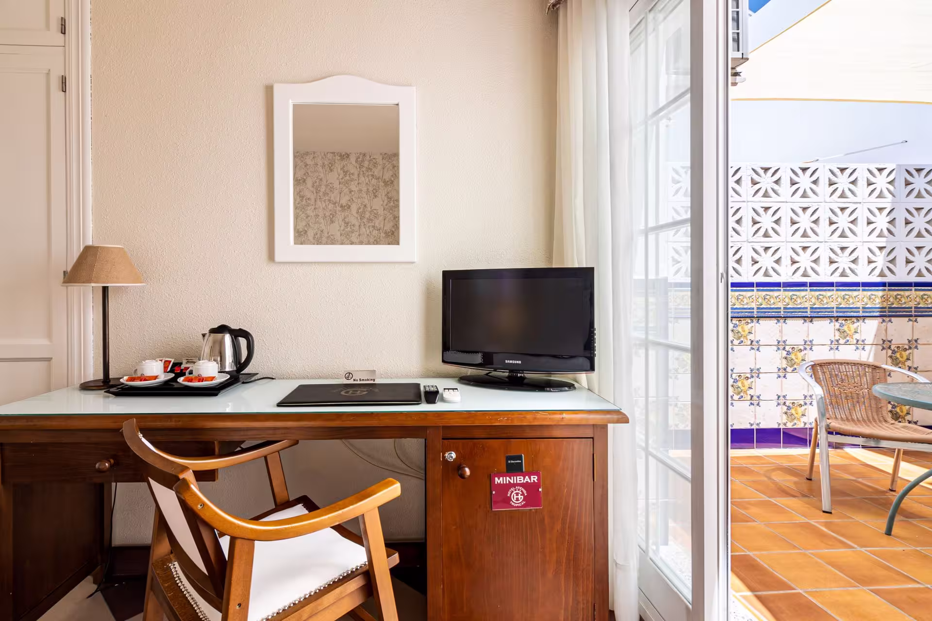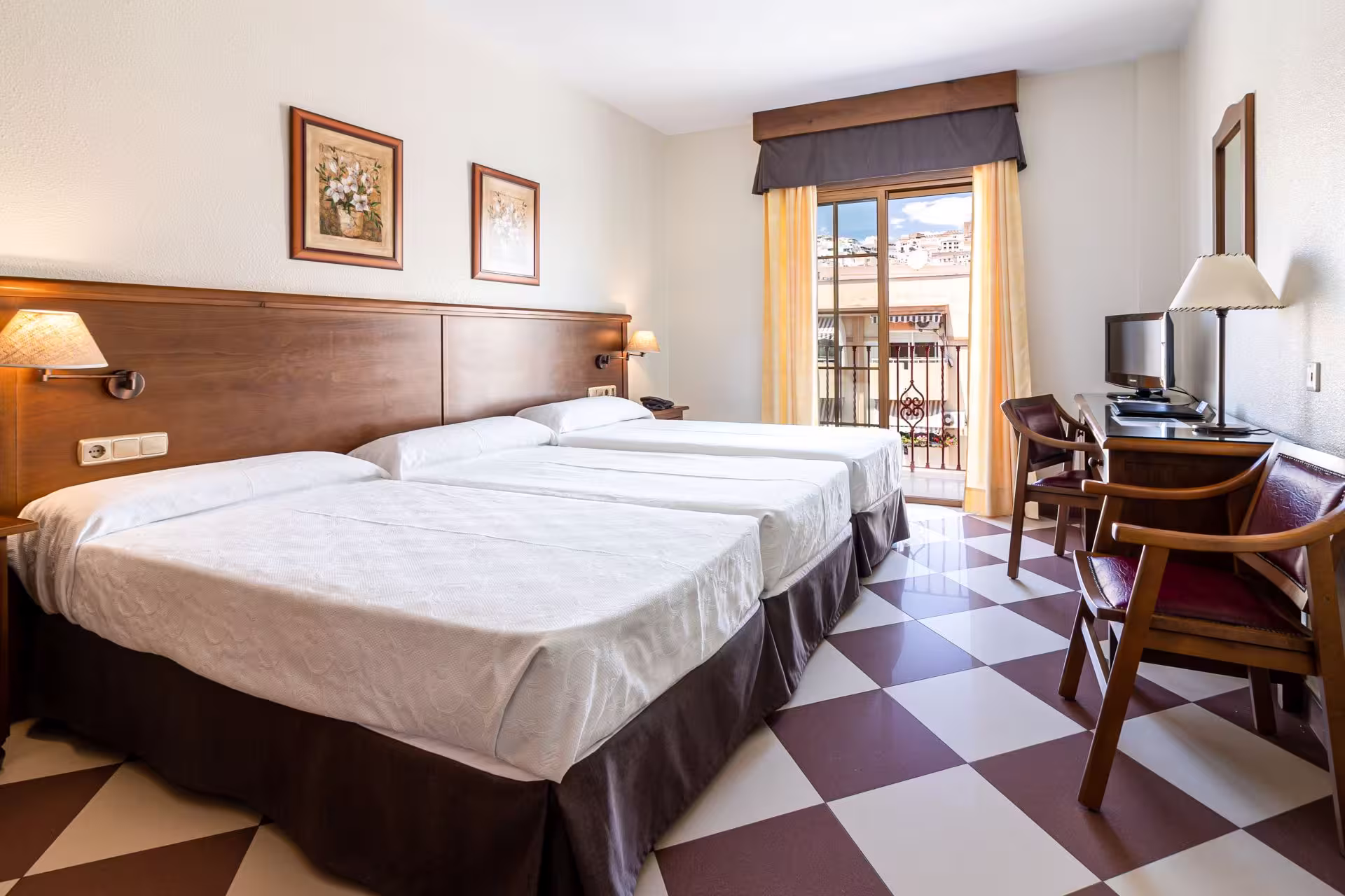 Cada espacio del hotel está pensado para ofrecer comodidad, funcionalidad y una atmósfera acogedora. Habitaciones luminosas, ambiente cercano y una ubicación estratégica que permite disfrutar tanto de la playa como del encanto del casco antiguo, con su castillo árabe y sus calles blancas llenas de historia.